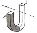 6、如图所示,一带正电的离子束沿图中箭头方向通过两磁极间时,它受的洛伦兹力方向