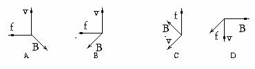 11、图中表示磁场B,正电荷运动方向v和磁场对电荷作用力f的相互关系图,这四个图中画得正确的是(已知B垂直于f与v决定的平面,B、f、V两两垂直).