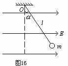 不可伸长的细丝线一端固定于O点, 另一端系住一个质量为m的带电小球。将此装置放在水平向右的匀强电场E中, 待小球稳定后,细丝线跟竖直方向夹角为α, 求:(1)小球带什么电?电量是多少?