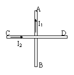 两条直导线相互垂直,如图所示,但相隔一个小距离,其中一条AB是固定的,另一条CD能自由转动,当电流按图所示的方向通入两条导线时,CD导线将