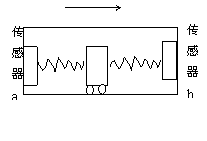 15.如图3-4的装置可以测量汽车在水平路面上做匀加速直线运动的加速度。该装置是在矩形箱子的前后壁上各安装一个由力敏电阻组成的压力传感器。用两根相同的轻弹簧夹着一个质量为2.0kg的滑块,滑块可以无摩擦滑动,两弹簧的另一端分别压在传感器a、b上,其压力大小可直接从传感器的液晶显示屏上读出。现将装置沿运动方向固定在汽车上,传感器b在前,传感器a在后。汽车静止时,传感器a、b的示数均为10N。(取g=10m/s2)