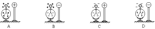 1. 使带电的金属球靠近不带电的验电器,验电器的箔片张开。下列各图表示验电