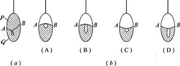 6、如图6(a)所示,金属框架的A、B间系一个棉线圈,先使布满肥皂膜,然后将P和Q两部分肥皂膜刺破后,线的形状将如图(b)中的( )