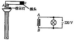 如图8为“热得快”热水器电路图和简易图。现接通电源,发现该热水器没有发热,并且热水器上的指示灯也不亮,现用交流电压表测得热水器A、B两端的电压为220V,指示灯两端电压为220V。该热水器的问题在于( )