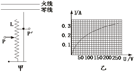 12.为了测量和描绘“220 V 40 W”白炽电灯灯丝的伏安特性曲线,可以利用调压变压器供电.调压变压器是一种自耦变压器,它只有一组线圈L绕在闭合的环形铁芯上,输入端接在220 V交流电源的火线与零线间,输出端有一个滑动触头P,移动它的位置,就可以使输出电压在0-250 V之间连续变化,图10甲中画出的是调压变压器的电路图符号.实验室内备有交流电压表,交流电流表,滑动变阻器,开关,导线等实验器材.