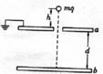 13.如图所示,相距为d、水平放置的两块平行金属板a、b,其电容量为C,开始时两板均不带电,a板接地且中央有孔,现将带电量为q、质量为m的带电液滴一滴一滴地从小孔上方高处无初速地滴下,竖直落向b板,到达b板后电荷全部传给b板(重力加速度为g,不计a、b板外电磁场及阻力的影响),求:(1)第几滴滴在a、b板间将作匀速直线运动?