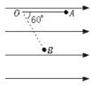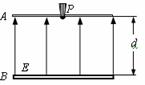如图所示,竖直实线为电场线,质量为m,电量为-q的质点P从电场边缘A射入电场,并沿直线AB从B飞出,AB直线与电场线夹角为θ,A、B两点相距为d,则A、B两点的电势差为多少?