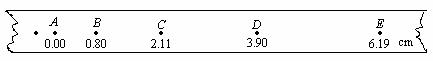 .每相邻两个计数点间还有4个实验点(图中未画出),已用刻度尺测量以A为起点,到B、C、D、E