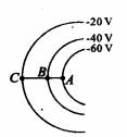 5.右图中实线表示电场中的三个等势面,各等势面的电势值如图所示.把一个负电荷沿 A→B→C 移动,电荷在这三点所受的电场力为FA、 FB、 FC,电场力在 AB 和 BC 段做的功为WAB和WBC, 那么郝双 制作