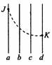 13 一带电粒子沿着图中曲线 JK 穿过一匀强电场, a 、 b 、 c 、 d 为该电场的等势面,其中Ua<Ub<Uc<Ud,若不计粒子受的重力,可以确定
