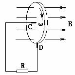 14.(10分)如图所示为法拉第圆盘发电机的示意图:铜盘安装在水平的铜轴上,已知铜盘的直径为d,铜盘的电阻可忽略。整个铜盘处于垂直于盘面的匀强磁场B中,铜盘以角速度ω匀速转动,两铜片C、D分别与转动轴和铜盘的边缘接触,通过连接导线对电阻R供电。