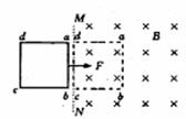 21、如图所示,在光滑绝缘的水平面上有一个用一根均匀导体围成的正方形线框abcd,其边长为L,总电阻为R,放在磁感应强度为B.方向竖直向下的匀强磁场的左边,图中虚线MN为磁场的左边界。线框在大小为F的恒力作用下向右运动,其中ab边保持与MN平行。当线框以速度v0进入磁场区域时,它恰好做匀速运动。在线框进入磁场的过程中,