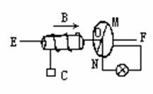 如图所示,长2L,电阻2R的金属棒MN垂直固定在转轴EF上,轴转动后,MN可以无摩擦地在金属圆环上滑动.从圆环和轴心O分别引出导线,连接一个电阻R的电灯,导线及圆环电阻不计,匀强磁场B平行于EF轴水平向右,EF上固定着一个半径为r的轮轴,缠绕在轮轴上的细绳连接重物C,当C下降时,MN以角速度ω匀速转动.求(1)画出对电灯供电的等效电路图;(2)通过灯泡的电流多大?(3) C的质量多大?