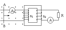 如图中理想变压器原、副线圈匝数之比n1:n2=4:1,原线圈两端连接光滑导轨,副线圈与电阻R相连组成闭合回路。当直导线AB在匀强磁场中沿导轨匀速地向右作切割磁感线运动时,安培表A1的读数是12mA,那么安培表A2的读数为( )