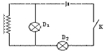 A.K闭合瞬间,两灯同时亮,以后D1熄灭,D2变亮