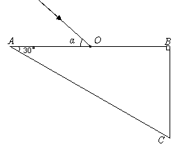 的某种透明物质制成的直角三棱镜横截面(O为AB的中点),∠A=30°.一束光线在纸面内从O点射入棱镜,光线与AB面间的夹角为α。若不考虑光线在AB和BC面上的反射,则: