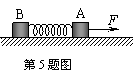 如图所示,质量相同的两木块A、B用劲度系数为k的轻弹簧连接后静止于光滑的水平面上,开始弹簧处于自然状态,现用一水平的恒力F拉木块A,经过时间t,弹簧第一次被拉至最长,此时木块A的位移为s,则在该过程中