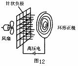 空气中的负氧离子对于人的健康极为有益.有的氧吧通常采用人工产生负氧离子使空气清新,从而使顾客愉悦.其最常见的是采用电晕放电法,e=1.6×10-19庫,如图12所示,一排针状负极和环形正极之间加上直流高压电,电压达5000V左右,使空气发生电离,从而产生负氧离子.在负极后面加上小风扇,将大量负氧离子排出,使空气清新化,针状负极与环形正极间距离为5 mm,且视为匀强电场,电场强度为E=106 N/C,电场对负氧离子的作用力为F,则(