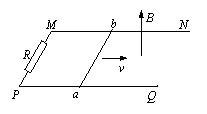 图中MN和PQ为竖直方向的两平行长直金属导轨,间距l为0.40m,电阻不计.导轨所在平面与磁感应强度B为0.50T的匀强磁场垂直.质量m为6.0×10-3kg、电阻为1.0Ω的金属杆ab始终垂直于导轨,并与其保持光滑接触.导轨两端分别接有滑动变阻器和阻值为3.0Ω的电阻R1.当杆ab达到稳定状态时以速率v匀速下滑,整个电路消耗的电功率P为0.27W,重力加速度取10m/s2,试求速率v和滑动变阻器接入电路部分的阻值R2.