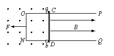 一个“ ”形导轨PONQ,其质量为M=2.0kg,放在光滑绝缘的水平面上,处于匀强磁场中,另有一根质量为m=0.60kg的金属棒CD跨放在导轨上,CD与导轨的动摩擦因数是0.20,CD棒与ON边平行,左边靠着光滑的固定立柱a、b,匀强磁场以ab为界,左侧的磁场方向竖直向上(图中表示为垂直于纸面向外),右侧磁场方向水平向右,磁感应强度的大小都是0.80T,如图所示.已知导轨ON段长为0.50m,电阻是0.40Ω,金属棒CD的电阻是0.20Ω,其余电不计.导轨在水平拉力作用下由静止开始以0.20m/s2的加速度做匀加速直线运动,一直到CD中的电流达到4.0A时,导轨改做匀速直线运动.设导轨足够长,取g=10m/s2.求: