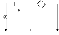 如图所示,电路电阻为R,当电压为U时,安培表读数为I,