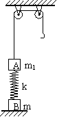 的物体B相连,弹簧的劲度系数为k,A、B都处于静止状态。一条不可伸长的轻绳绕过轻滑轮,一端连物体A,另一端连一轻挂钩。开始时各段绳都处于伸直状态,A上方的一段绳沿竖直方向。现在挂钩上升一质量为