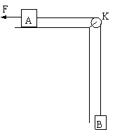 如图所示,在水平桌面的边角处有一轻质光滑的定滑轮K,一条不可伸长的轻绳绕过K分别与物块A、B相连,A、B的质量分别为mA、mB。开始时系统处于静止状态。现用一水平恒力F拉物块A,使物块B上升。已知当B上升距离为h时,B的速度为v。求此过程中物块A克服摩擦力所做的功。重力加速度为g。