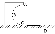 (10月13日)、1、 如图所示,一固定在竖直平面内的光滑半圆形轨道ABC,其半径R=0.5m,轨道在C处与水平地面相切。在C放一小物块,给它一水平向左的初速度v0=5m/s,结果它沿CBA运动,通过A点,最后落在水平地面上的D点,求C、D间的距离s。取重力加速度g=10m/s2。