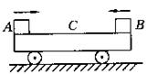 19.(12分)如图所示,平板小车C静止在光滑的水平面上。现有A、B两个小物体(可看作质点)分别从小车C的两端同时水平地滑上小车,初速度vA=0.6m/s,vB=0.3m/s,A、B与C间的动摩擦因数都是0.1。A、B、C的质量都相同。最后A、B恰好相遇而未碰撞,且A、B、C以共同的速度运动,g=10m/s2。求: