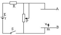 19.(12分)如图所示的电路中,两平行金属板A、B水平放置,两板间距离d=40cm。电源电动势E=24V,内电阻r=1Ω,电阻R=15Ω。闭合开关S。待电路稳定后,将一带正电的小球从B板小孔以初速度v0=4m/s竖直向上射入板间。若小球带电量为q=1×10-2C,质量为m=2×10-2kg,不考虑空气阻力。那么,滑动变阻器接入电路的阻值为多大时,小球恰能到达A板?此时,电源输出功率是多大?(取g=10m/s2)