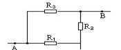 如图所示,R1和R2的规格为“4W、100Ω”,R3的规格为“1W、100Ω”,当A、B端加电源通电时,这部分电路允许消耗的最大功率为:
