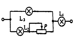 变阻器的滑动触头P向右移动时,三个灯泡亮