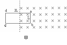 19.有界匀强磁场如图甲所示,质量为m,电阻为R的长方形线圈abcd,边长分别为L和2L,现线圈一半在磁场内,另一半在磁场外,磁感应强度为B。,