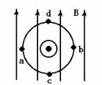 如图所示,在竖直向上的匀强磁场中,水平放置着一根长直流导线,电流方向指向读者,a、b、c、d是以直导线为圆心的同一圆周上的四点,在这四点中:( )