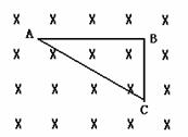 9、如图所示,直角三角形通电闭合线圈ABC处于匀强磁场中,磁场垂直纸面向里,则线圈所受磁场力的合力为:( )