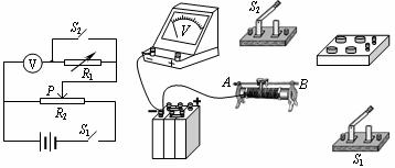 为了较准确地测定一只量程为3V,内阻约3kΩ的电压表的内阻值,在手头没有电流表可用的情况下,某同学设计了如下图所示的实验电路。其中R1是最大阻值为9999Ω的电阻箱,R2是最大阻值为20Ω的滑动变阻器。电源是电动势为6V的蓄电池。