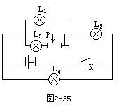 14、如图所示电路,当K闭合后,滑动变阻器的滑片P处于图示位置时,小灯泡L1、L2、L3、L4的亮度均相同。若将P向左滑动时,各灯泡亮度变化的情况是( )