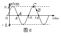11.(8分)(1)如图6所示,一列简谐横波在某一时刻的波的图象,A、B、C是介质中的三个质点.已知波是向x正方向传播的,波速为v =20m/s,下列说法中正确的是 ▲