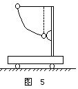 13.如图5所示,在光滑水平面上有一静止的小车,用线系一小球,将球拉开后放开,球放开时小车保持静止状态,当小球落下以后与固定在小车上的油泥沾在一起,则从此以后,关于小车的运动状态是 [ ]