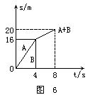 16.如图6所示,A、B两物体的质量分别为3kg与1kg,相互作用后沿同一直线运动,它们的位移-时间图像如图6所示,则A物体在相互作用前后的动量变化是______kg·m/s,B物体在相互作用前后的动量变化是______kg·m/s,相互作用前后A、B系统的总动量______。