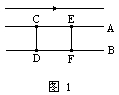 1.位于载流长直导线近旁的两根平行铁轨A和B,与长直导线平行且在同一水平面上,在铁轨A、B上套有两段可以自由滑动的导体CD和EF,如图1所示,若用力使导体EF向右运动,则导体CD将 [ ]