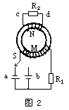 2.M和N是绕在一个环形铁心上的两个线圈,绕法和线路如图2,现将开关S从a处断开,然后合向b处,在此过程中,通过电阻R2的电流方向是 [ ]