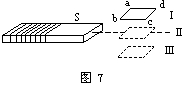 7如图7所示,一个水平放置的矩形线圈abcd,在细长水平磁铁的S极附近竖直下落,由位置Ⅰ经位置Ⅱ到位置Ⅲ。位置Ⅱ与磁铁同一平面,位置Ⅰ和Ⅲ都很靠近Ⅱ,则在下落过程中,线圈中的感应电流的方向为 [ ]