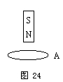 24.如图24所示,导线圈A水平放置,条形磁铁在其正上方,N极向下且向下移近导线圈的过程中,导线圈A中的感应电流方向是____,导线圈A所受磁场力的方向是____。若将条形磁铁S极向下,且向上远离导线框移动时,导线框内感应电流方向是____,导线框所受磁场力的方向是____。