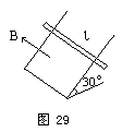 29.如图29所示,金属框架与水平面成30°角,匀强磁场的磁感强度B=0.4T,方向垂直框架平面向上,金属棒长l=0.5m,重量为0.1N,可以在框架上无摩擦地滑动,棒与框架的总电阻为2Ω,运动时可认为不变,问: