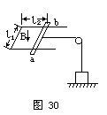 30.如图30所示,导轨是水平的,其间距l1=0.5m,ab杆与导轨左端的距离l2=0.8m,由导轨与ab杆所构成的回路电阻为0.2Ω,方向垂直导轨平面向下的匀强磁场的磁感应强度B=1T,滑轮下挂一重物质量0.04kg,ah杆与导轨间的摩擦不计,现使磁场以