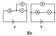 11.在图6中,A. B两图分别为测灯泡电阻 R的电路图,下述说法正确的是 [ ]