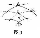如图3所示,表示两列相干水波的叠加情况,图中实线表示波峰,虚线表示波谷。设两列波的振幅为5cm,C点是BD连线的中点,下列说法中正确的是 ( )