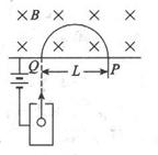 (12分)质谱仪的构造如图14所示,离子从离子源出来经过板间电压为U的加速 电场后进人磁感应强度为B的匀强磁场中,沿着半圆周运动而达到记录它的照相底片上,测得图中PQ的距离为L,则该粒子的荷质比q/m为多大?