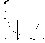 (13分)如图所示,带电液滴从h高处自由落下,进入一个匀强电场与匀强磁场互相垂直的区域,电场强度大小为E方向竖直向下,磁感应强度大小为B,已知液滴在此区域中做匀速圆周运动。试问: